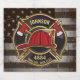 Firefighter NAME Fireman Fire Department USA Flag design - Emblem with Red Helmet and Axe. Customise with your Name, Station/Dept Number and location.