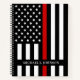 Thin Red Line Firefighter Notebook - American flag in Firefighter Flag colours, modern black and red design . Personalise with firefighter name. This personalised firefighter notebook is perfect for fire departments an fire service. COPYRIGHT © 2020 Judy Burrows, Black Dog Art - All Rights Reserved. Firefighter Personalised Name Thin Red Line Notebook