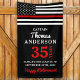 Happy Retirement! Add the finishing touch to your firefighter retirement party with these thin red line firefighter retirement banners and party supplies. USA American flag design in Firefighter Flag colours, modern black and red design. This firefighter retirement collection will be a favourite. Personalise with fireman name, rank, years of service,fire department, message and retired date. See our thin red line collection for matching firefighter retirement invitations, fireman gifts, party favours, and supplies. COPYRIGHT © 2020 Judy Burrows, Black Dog Art - All Rights Reserved. Firefighter Retirement Anniversary Thin Red Line Banner