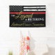 This design features a firemens flag with black and white stripes, and a thin red line stripe as well. "The Legend is Retiring" text sits above the name of the retiring firefighter, lieutenant, or chief. Celebrate in style!