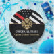 This design features a firemen's flag with black and white stripes, and a thin red line stripe as well. "Congratulations" and a fireman's badge sits above the name of the graduating or retiring firefighter, lieutenant, or chief. Celebrate in style!