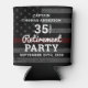 Thin Red Line Firefighter Retirement Can Cooler - USA American flag design in Firefighter Flag colours, distressed design . This personalised firefighter retirement can cooler is perfect to celebrate your retired fireman, firefighter retirement party favours, fire department retirement party. Personalise these firefighter retirement can coolers with firefighters years of service, rank and name, and retirement date. .
