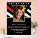This design features a firemen's flag with black and white stripes, and a thin red line stripe as well. "Congratulations" and a fireman's badge sits above the name of the graduating or retiring firefighter, lieutenant, or chief. Celebrate in style! Customise even further with a photo of the retiring firefighter.