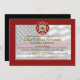 Firefighter etirement party invitations featuring a custom Maltese cross and thin red line firefighter flag background, with a classy gold frame.