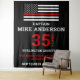 Thin Red Line Firefighter Retirement Tapestry - USA American flag design in Firefighter Flag colours, modern red black white . This personalised firefighter tapestry is perfect to celebrate your retired firefighter, firefighter retirement party decor , fire service retirement party. Personalise these firefighter retirement banner fireman rank, name, years of service and retirement date, and personal message.
