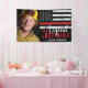 This design features a firemens flag with black and white stripes, and a thin red line stripe as well. "The Legend is Retiring" text sits above the name of the retiring firefighter, lieutenant, or chief. Celebrate in style! Customise even further with a photo of the retiring firefighter.