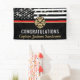 This design features a firemen's flag with black and white stripes, and a thin red line stripe as well. "Congratulations" and a fireman's badge sits above the name of the graduating or retiring firefighter, lieutenant, or chief. Celebrate in style!