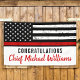 Add the finishing touch to your firefighter retirement or firefighter graduation party with these thin red line rustic firemen graduation banners and party supplies. USA American flag design in Fireman Flag colours, distressed design. This firefighter graduation collection will be a favourite. See our thin red line collection for matching fireman graduation invitations, firefighter gifts, party favours, and supplies. COPYRIGHT © 2020 Judy Burrows, Black Dog Art - All Rights Reserved. Firefighter Retirement Thin Red Li Congratulations Banner