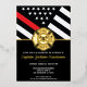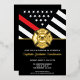 This design features a firemen's flag with black and white stripes, and a thin red line stripe as well. "Congratulations" and a fireman's badge sits above all of the party details for the retiring firefighter, lieutenant, or chief's retirement party. The invitations can also be customised for a firefighter academy graduate.