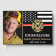 This design features a firemen's flag with black and white stripes, and a thin red line stripe as well. "Congratulations" and a fireman's badge sits above the name of the graduating or retiring firefighter, lieutenant, or chief. Celebrate in style! Customise even further with a photo of the retiring firefighter.