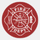 Fire Dept Maltese Cross Round Sticker, matte the perfect giveaway item or collectable for any firefighter.