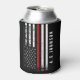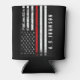 A custom name distressed style firefighter styled American flag can cooler. The thin red line running across the centre is representative of firefighter professionals. Follow the directions in the sidebar to add your name and to have it look perfect underneath the flag.