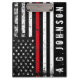 A custom name distressed style firefighter styled American flag office clipboard. The thin red line running across the centre is representative of firefighter professionals.