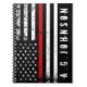 A custom name distressed style firefighter styled American flag note book. The thin red line running across the centre is representative of firefighter professionals. Follow the directions in the sidebar to add your name and to have it look perfect underneath the flag.