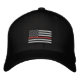 The symbolic Thin Red Line on a US Flag embroidery. A great embroidered hat gift idea for memorial and remembrance occasions.