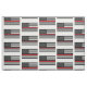 This cotton fabric is printed with a thin red line flag pattern / design.