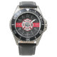 Add your own custom fire department emblem to this custom men's watch. Chose firefighter watches for men and women who ride the "Thin Red Line" This watch contains the fire dept Maltese cross on a thin red line firefighter flag and makes great firefighter retirement gifts. Order fire department gifts for everyone on the squad.