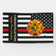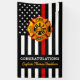 Congratulations ! Add the finishing touch to your firefighter retirement or graduation party with these thin red line firefighter retirement banners and party supplies. USA American flag design in Firefighter Flag colours, modern black red design with gold maltese cross emblem,. This firefighter retirement collection will be a favourite. Personalise with fireman name, and congratulations can be changed to happy retirement for either firefighter retirement party, or fire academy graduation party. See our thin red line collection for matching fireman retirement invitations, firefighter gifts, party favours, and supplies. COPYRIGHT © 2020 Judy Burrows, Black Dog Art - All Rights Reserved. Firefighter Retirement Thin Red Line Flag Congrats