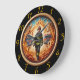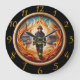 Honour the bravery of our first responders with the Firefighter Valour Heritage clock. This powerful timepiece features a high-definition graphic centred on a determined firefighter in full gear, flanked by two classic fire engines. The background is dominated by a majestic, stylised swirl of golden and orange flames that create a halo of light around the central figure. The artwork is set within a deep-toned circular frame, featuring elegant gold-leaf hour markers that stand out against a dark perimeter. While the design masterfully captures the movement of fire and the dimensional texture of professional equipment, this is a durable high-definition graphic application on a premium round clock face. It serves as a prestigious and meaningful tribute for any fire station, office, or home of a hero.