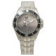 Has heft and feel of expensive stainless steel quartz watches. Good band with safety catch. I removed links, which is easy because engraved arrows show direction to push the linking pins. As always by this seller, the image (a railroad logo) is a perfect reproduction of my emailed image, and is precisely spaced and aligned.