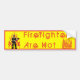 Silhouette of a uniformed firefighter surrounded by flames located on the left corner and the words "Firefighters Are Hot" in the middle, and some more flames on the right side all in a bright yellow background with a red border.