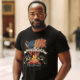 This custom t shirt features Two firefighters work together to extinguish a car fire, with an American flag in the background. symbolising bravery and heroism,
