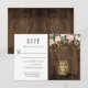 Rustic RSVPs featuring a mason jar filled with fireflies and sparkles with blush pink and gold watercolor flowers with fireflies sprinkled throughout over a barn wood background. If you would like this design on a matching product, or need help, please contact me through my store. There is a matching invitation available.
