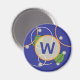 Glowing fireflies dance among floating leaves above a deep blue background. Orange and silver rings create an effect like stylised ripples to give the base a water-like feel. Customise the monogram on this magnet with your initial to make it uniquely your own.