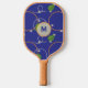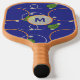 Glowing fireflies dance among floating leaves above a deep blue background. Orange and silver rings create an effect like stylised ripples to give the base a water-like feel. Customise the monogram with your initial to create a unique paddle for your pickleball games.