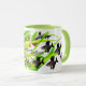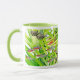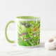Firehead tetraなどの小型の熱帯魚の写真で構成したマグカップです。水草の葉の隙間からは小さな魚を狙う大きな魚も見えています。なお、このマグカップは、魚の背景に明るい緑色の水草(=Eichhornia azurea)を敷いているので、とても明るい印象の製品になりました。 ( Photo & Designed by KOBAYASHI,Michinobu )