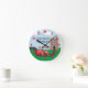 Give your little firefighter his very own custom round clock! Clock adds a cute touch to the bedroom or nursery of your little boy and features a fire truck racing to a burning building. Custom text says Fireman followed by your child's first name.