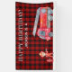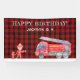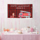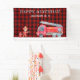 A cute red firetruck Birthday banner is the perfect birthday decoration theme for a firefighter birthday party. It features your child's custom name and age. You can edit all of the text. This one has a christmas theme with a traditional checker tartan plaid in red and black.