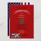 Unique retirement invitation for a fireman or Fire Chief. Design has a Firetruck with the custom engine number and an American Flag with the words firefighter. Use our template to add your party details.