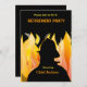 Unique retirement invitation for a fireman or Fire Chief . Design has a Firefighter with flames in the background and the wording for a retirement party invitation. Easy to customise with your party details.
