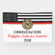 This design features a firemen's flag with black and white stripes, and a thin red line stripe as well. "Congratulations" and a fireman's badge sits above the name of the graduating firefighter. This design also works great for retiring firefighters, lieutenants, or chiefs. Celebrate in style!