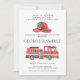 This Fireman Retirement Party Invitation is designed to match our Minimal Firetruck themed collection! This theme is perfect for any retiring firefighter with soft tones of red and grey. This design features a rustic red watercolor fire engine truck and helmet, along with a matching red abstract backside pattern.