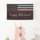 Happy Retirement! Add the finishing touch to your firefighter retirement with these thin red line firefighter retirement banners and party supplies. USA American flag design in Firefighter Flag colours, distressed vintage design on grey black leather . This happy retirement firefighter retirement collection will be a favourite. Personalise with fireman name, and happy retirement can be changed to congratulations for either firefighter retirement party, or fire academy graduation party. See our thin red line collection for matching firefighter retirement invitations, firefighter gifts, party favours, and supplies. COPYRIGHT © 2020 Judy Burrows, Black Dog Art - All Rights Reserved. Fireman Thin Red Line Firefighter Retirement Banner