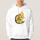 This design showcases one of the most recognisable professions, a fireman. This fireman is set against the background of some flames and is holding a fire hose ready to put the flames out. This fireman with a hose design looks great on this mens hoodie. Perfect for yourself or as a gift