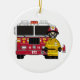 Adorably Cute Firefighter and Fire Engine Ornament.