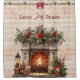 Transform your bathroom into a cozy retreat with this elegant shower curtain. Featuring a charming fireplace, delicate music notes, a Paris postmark, and lush foliage, it adds a touch of sophistication. The words "Peace, Joy & Love" complete the look, creating a serene and inviting atmosphere.