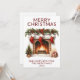 Fireplace Stockings for Christmas card in red for a festive Holiday greeting to family and friends.