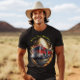 This custom T shirt features A red firetruck sits atop a golden disco ball with flames erupting from the sides.