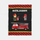 Cute fire engine theme blanket featuring a beautiful firetruck and cute fire extinguishing elements. Customise it with your child's name.