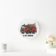 The clock did not take as long to arrive as I thought it might and was extremely well packaged. I didn't do the measurements so I didn't realize it is a little smaller than the average clock but that does not matter (just make sure you check if that's important to you).It is really nifty! It seems very solid and well made not flimsy at all. It has been going well and has kept good time in its few weeks on my wall. Nice product. Gets noticed too! Nicer in real life than the picture but true to the picture