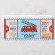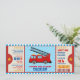Sound the Alarm! grab your gear and let's celebrate your little boy's birthday party with our Fire Engine Party Invitation. This fire truck ticket birthday invitations features a red fire truck on a red and blue colour admit one ticket design. Colour theme is fully editable! click customise to change the background colour. Design reverse to a on an editable background colour. This firefighter ticket invitations is perfect for your boy's first birthday, backyards birthday or fire station visit invitations.