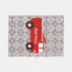 Cute child's blanket. Soft grey, with black and white polka dots, and a red firetruck personalised with your child's name! Make nap time fun!