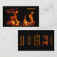 Easily customise all text to suit your business. This promotional card is advertising firewood for sale. It depicts the energy of fire in a wood burning stove. The orange, gold and yellow flames appear as joyful dancing characters. They are set off by a black background.