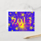 A firework exploding in a shower of dazzling gold and pink stars against a blue sky. Postcard with a yellow, pink, blue and white customisable design for you to personalise with your own text, pictures and ideas. The text can easily be changed using the template provided or click the 'Customise It' button to make further alterations. Created using original photographs and digital techniques by Jess Perry.