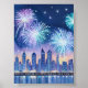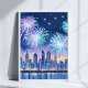 Firework Cityscape | Blue Lofi Digital Watercolor Poster