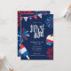 Patriotic Firework Fourth of July BBQ Invitation with dark blue background.